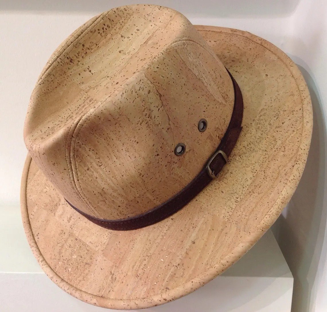 O chapéu de cortiça é um acessório tradicional e ao mesmo tempo contemporâneo, produzido em cortiça natural portuguesa, um material 100% ecológico e renovável. A cortiça é retirada de forma sustentável do sobreiro, sem danificar a árvore, o que torna cada chapéu uma escolha amiga do ambiente.