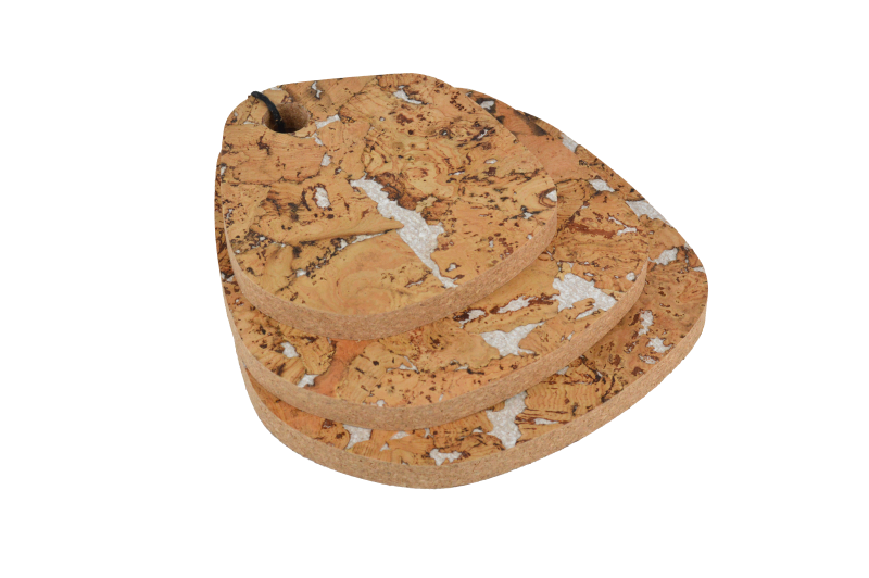 As bases vêm em três tamanhos diferentes, oferecendo versatilidade para o uso diário, desde recipientes pequenos até panelas maiores. A cortiça é naturalmente isolante térmica, antiderrapante e não risca móveis, garantindo segurança e durabilidade.